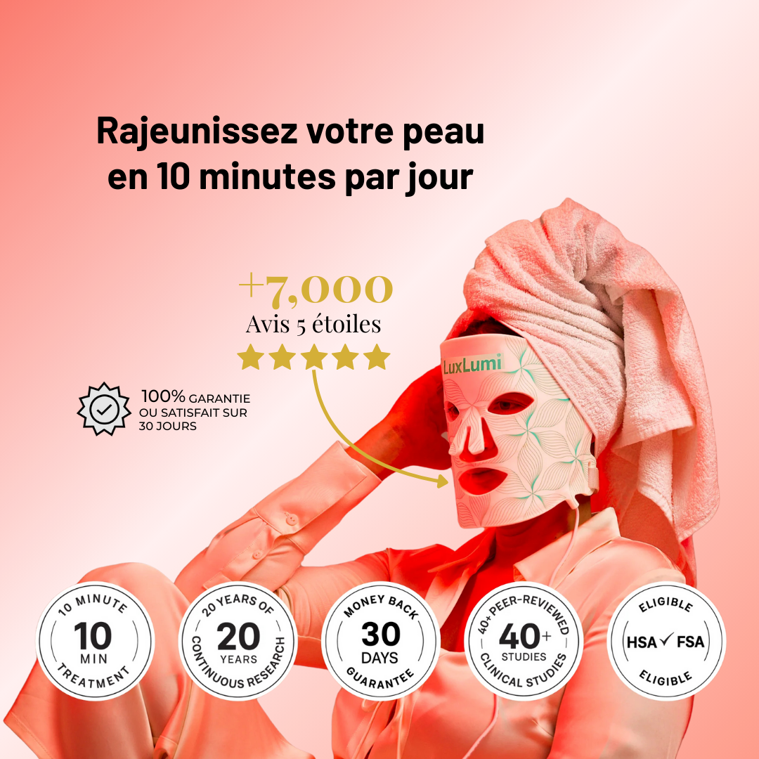Je travaille beaucoup et je n’ai pas le temps d’aller en institut. Le masque Luxlumi™ est devenu mon rituel beauté relaxant à la maison. En 10 minutes par jour, ma peau est plus lumineuse, plus lisse et je me sens mieux dans ma peau. Je recommande à toutes mes amies !