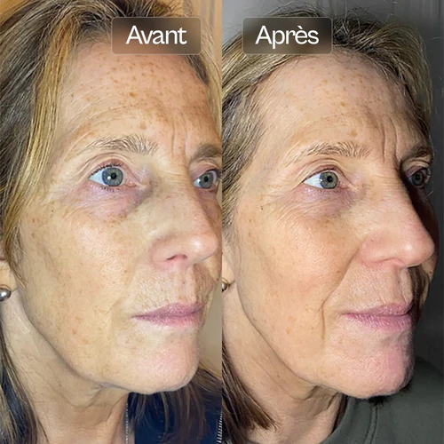 Je me sentais complexée par les petites rides qui apparaissaient autour de ma bouche. J’avais peur que ce soit trop tard… Mais Luxlumi™ m’a redonné confiance. Mon teint est plus uniforme, ma peau est douce, et je me regarde de nouveau dans le miroir avec plaisir."