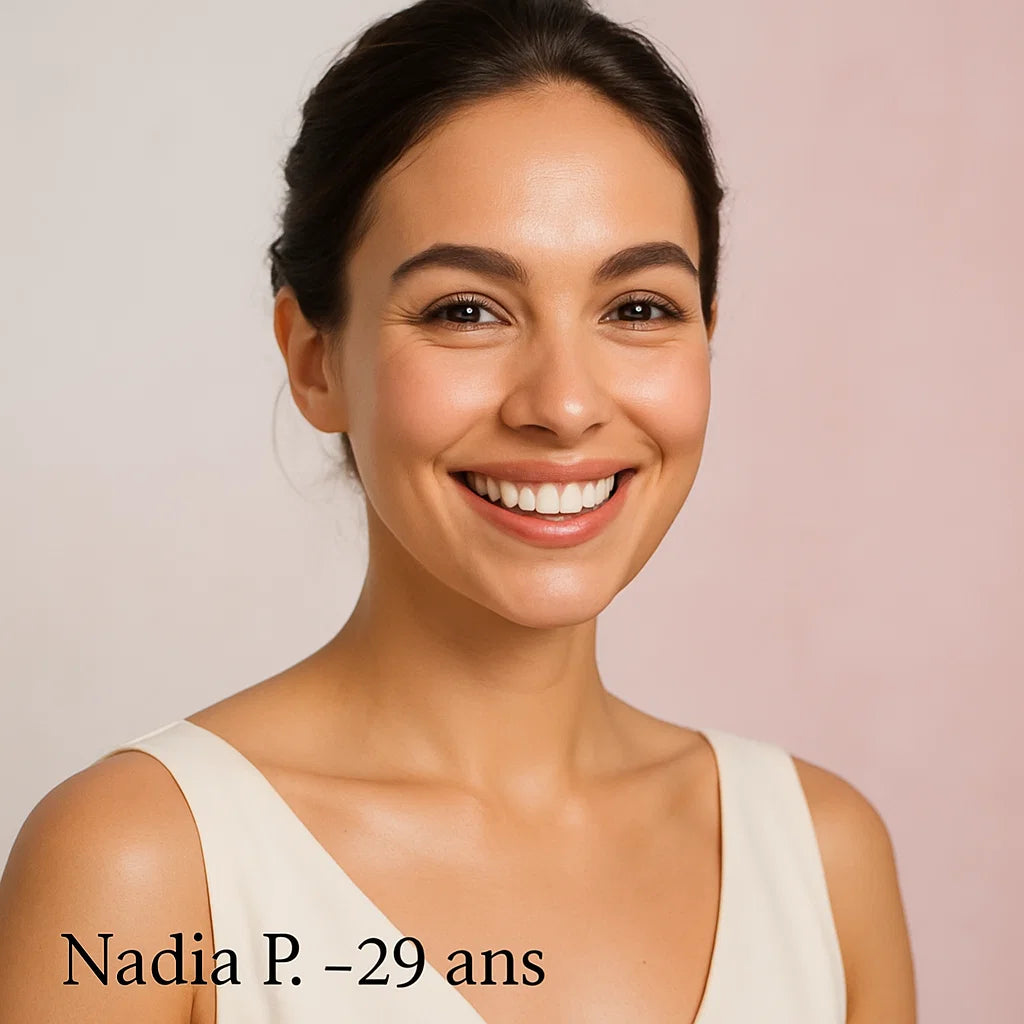 Mon mari n’est pas du genre à remarquer les détails… et pourtant, il m’a demandé si j’avais changé quelque chose à ma routine beauté. C’est le meilleur compliment que j’ai reçu depuis longtemps ! Merci Luxlumi™ !" .